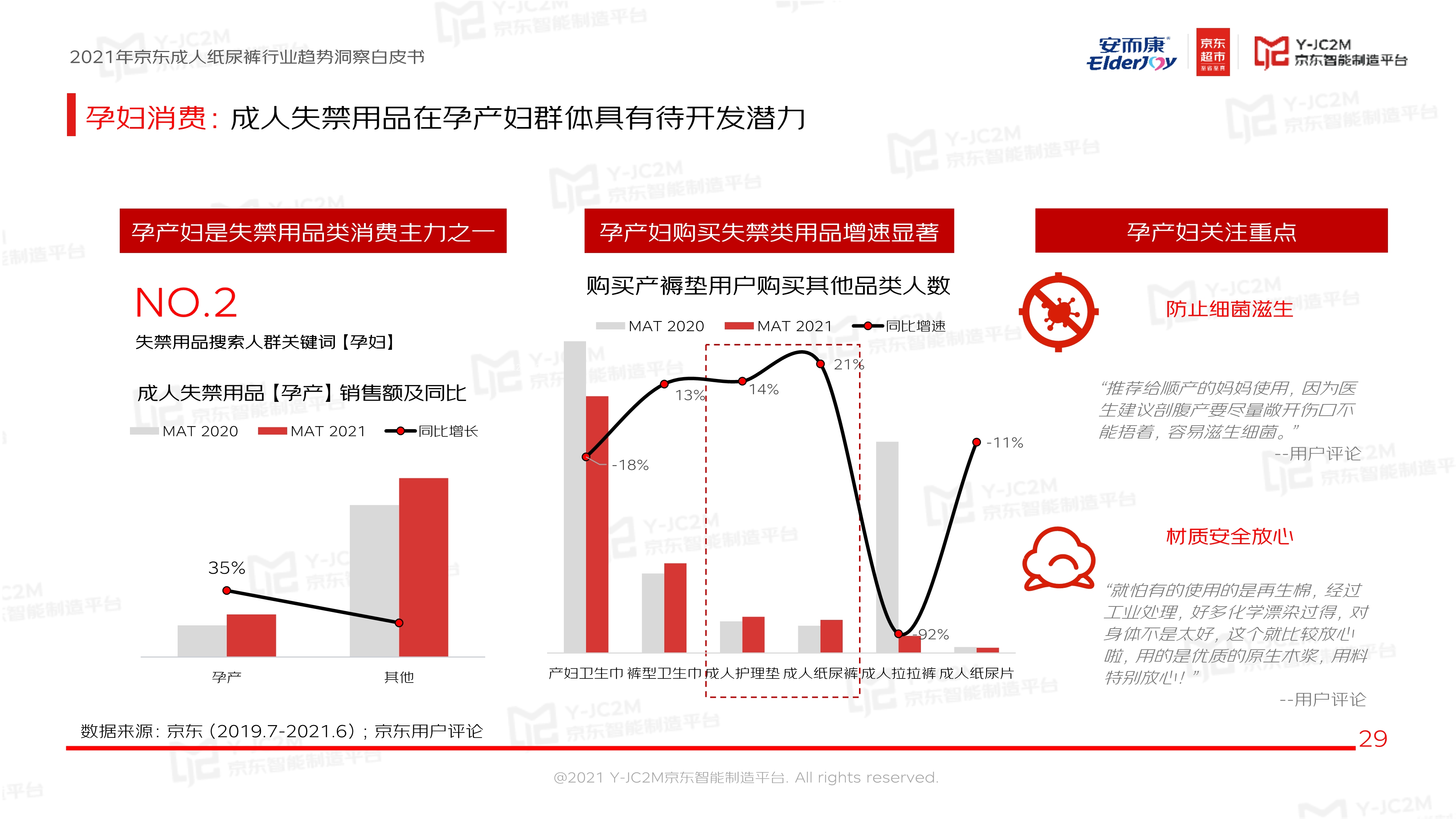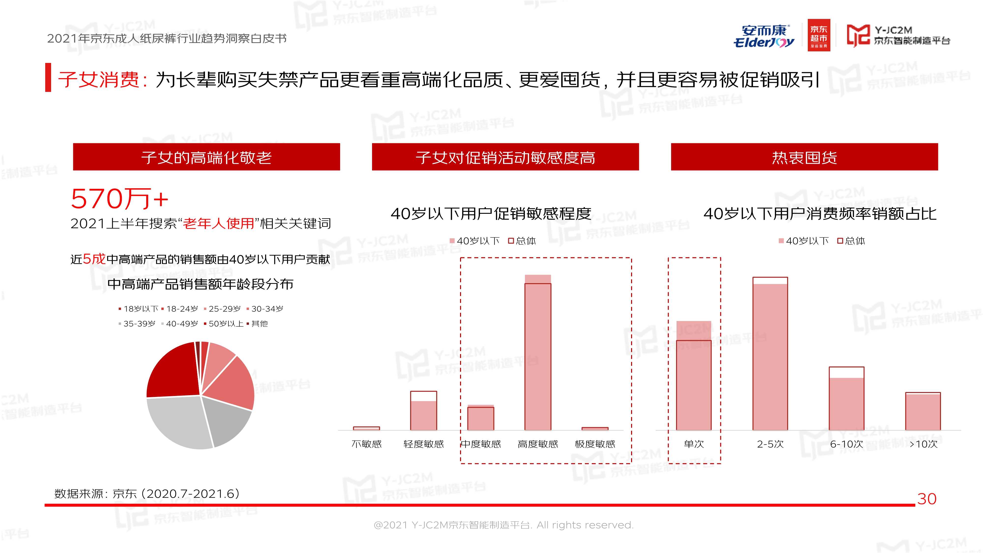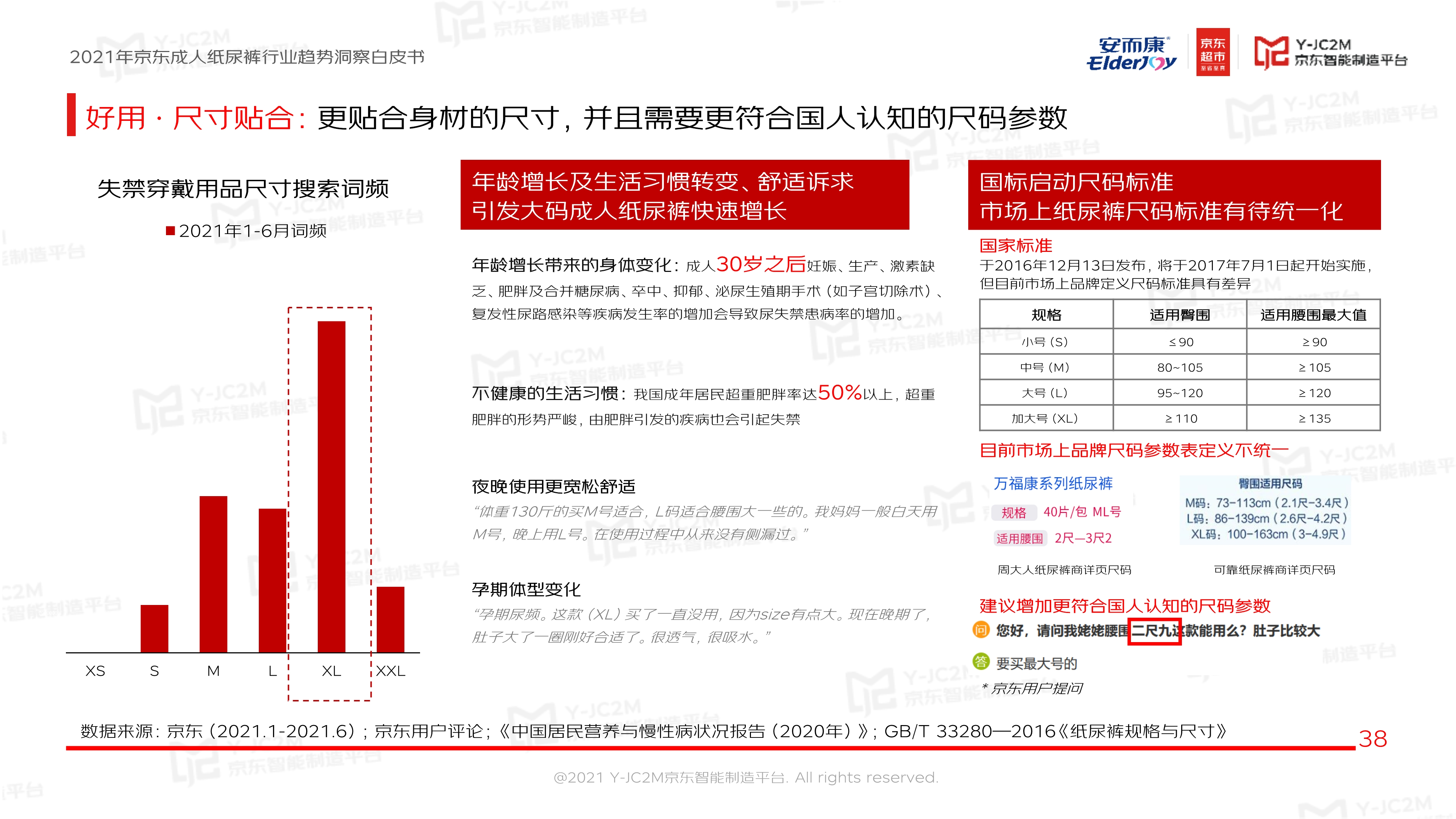 事件: 2023-01-07近日,快盈v3旗下成人纸尿裤品牌安而康联合京东智能制造平台共同发布《2021年京东成人纸尿裤行业趋势洞察白皮书》(下称《白皮书》),从行业概况、品牌格局、用户洞察、趋势展望四个维度,结合销量数据与消费者,深入剖析了随着我国步入老龄化社会以及消费观念不断升级,国内纸尿裤市场的全新变化与发展趋势。